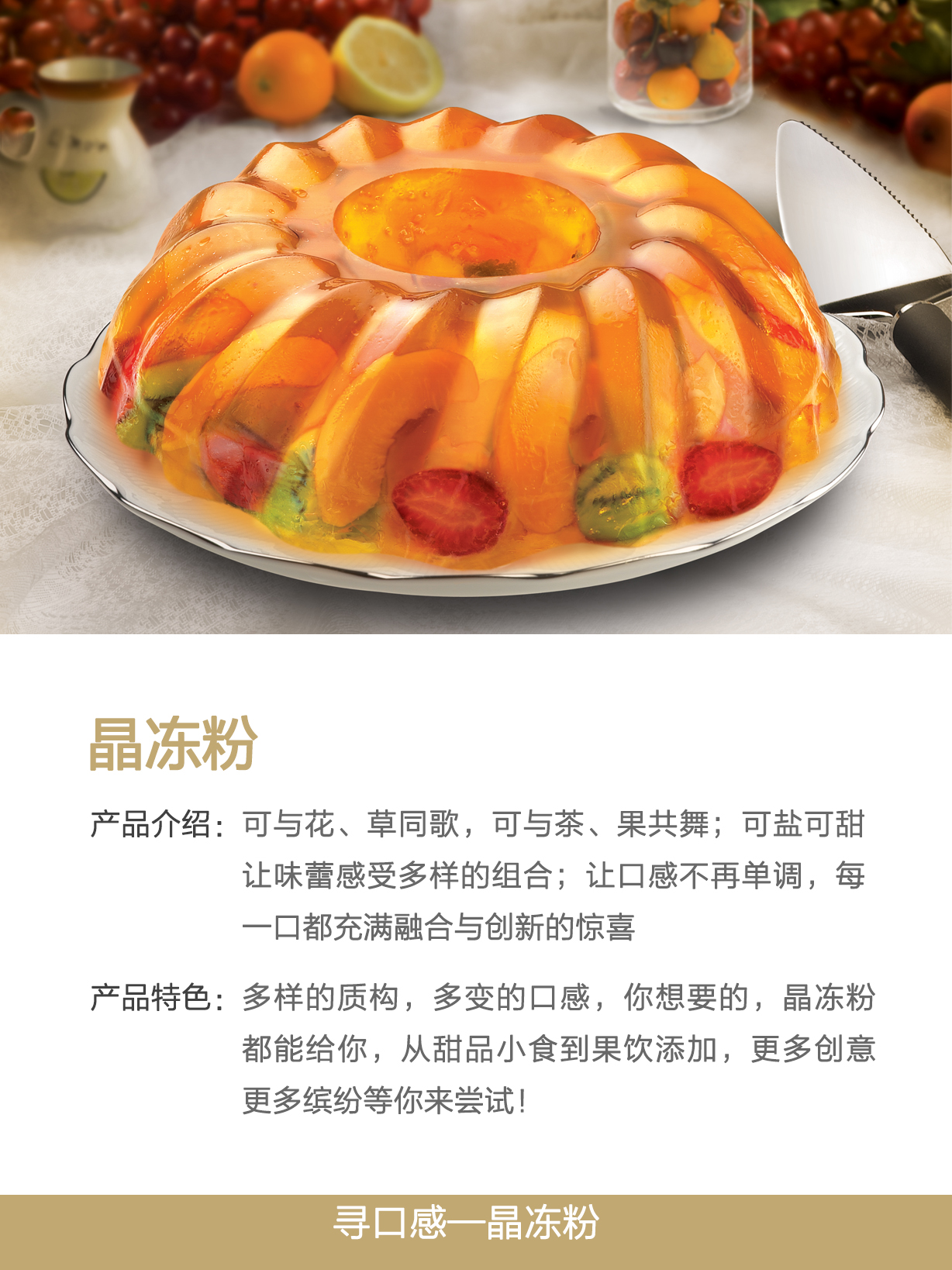 食物之美,不僅僅來自大自然的饋贈,還有一種美味來自我們的靈感。再多汁的水果也擺脫不了四季的束縛,在我們的世界里,水果不只是多汁的,也可以是Q彈的;再美好的蛋糕也有吃不下的最后一口,在我們的世界里,蛋糕不只是小勺慢品的,也可以是一飲而盡的。變化無窮的質構能為食物帶來豐富的口感,多樣的咀嚼體驗能為食物增添活力。